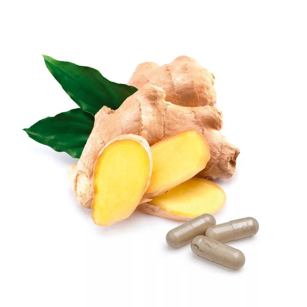 100% bio gyömbér (zingiber officinale) őrlemény; kapszulahéj: hidroxipropil-metil-cellulóz; Allergének: nyomokban gabonaféleségeket, földimogyorót, dióféléket, szóját és szezámmagot tartalmazhat