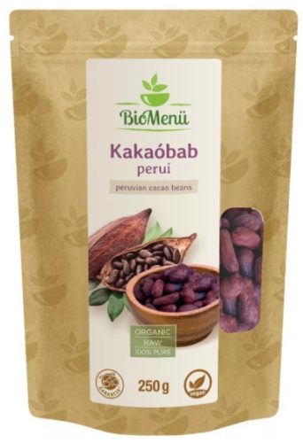 A BioMenü perui KAKAÓBAB a Cacao Criollo fajtából készül, melyet kiváló minősége miatt a kakaók „királyának” is neveznek. A kakaó tömege 50%-át három féle zsír alkotja, ezek nem károsak a szervezetünkre és nincs koleszterinnövelő hatásuk (az olajsav, a sztearinsav és a palmitinsav), illetve többféle aminosavat is tartalmaz(triptofán és argine). Nyers formában nagyon egészséges, rendkívül gazdag antioxidáns flavonoidokban.