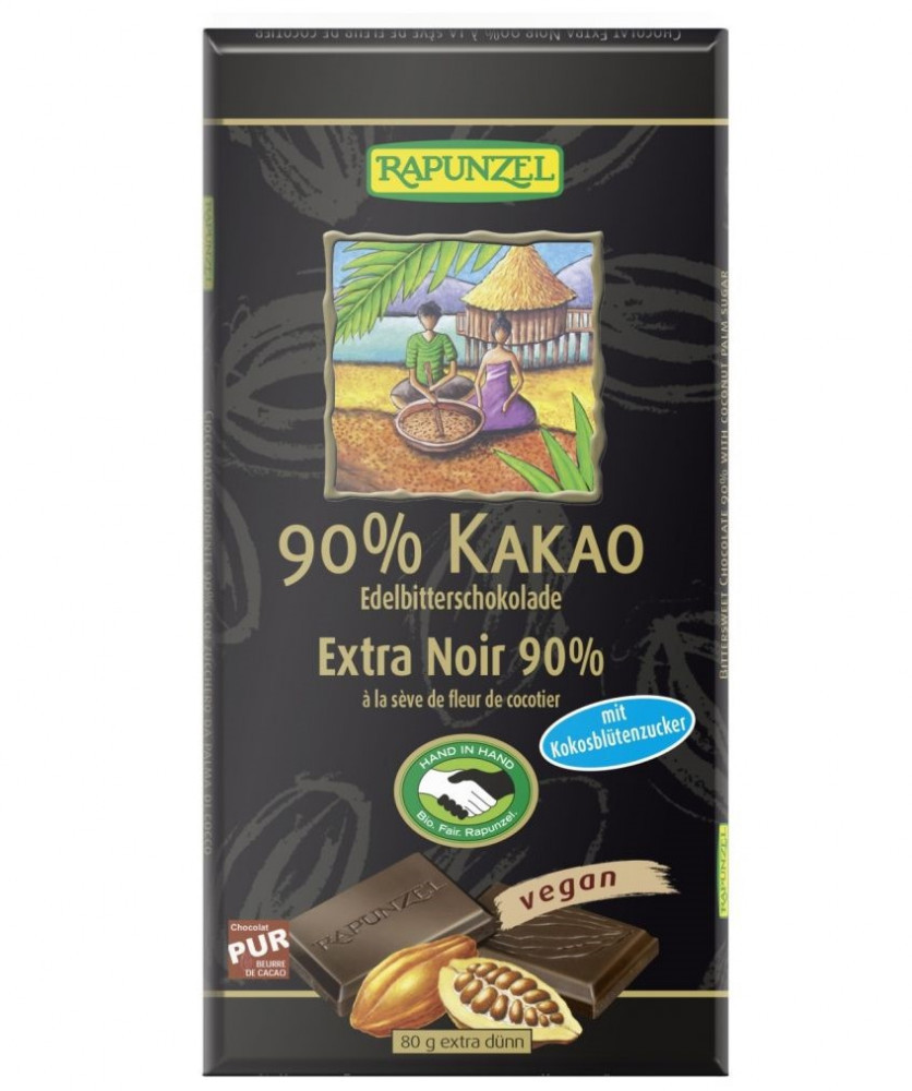 BIO Keserűcsokoládé 90%-os 80g Rapunzel kókuszvirágcukorral