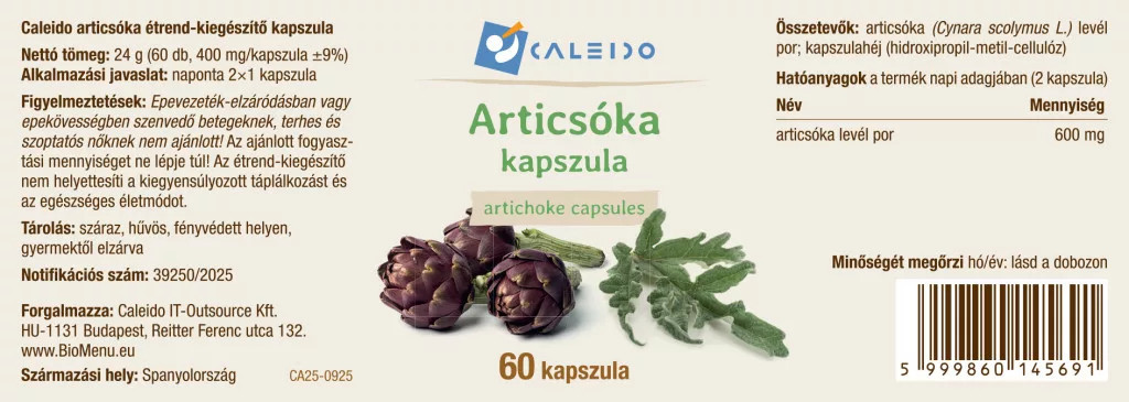 articsóka (Cynara scolymus L.) levél por; kapszulahéj (hidroxipropil-metil-cellulóz)