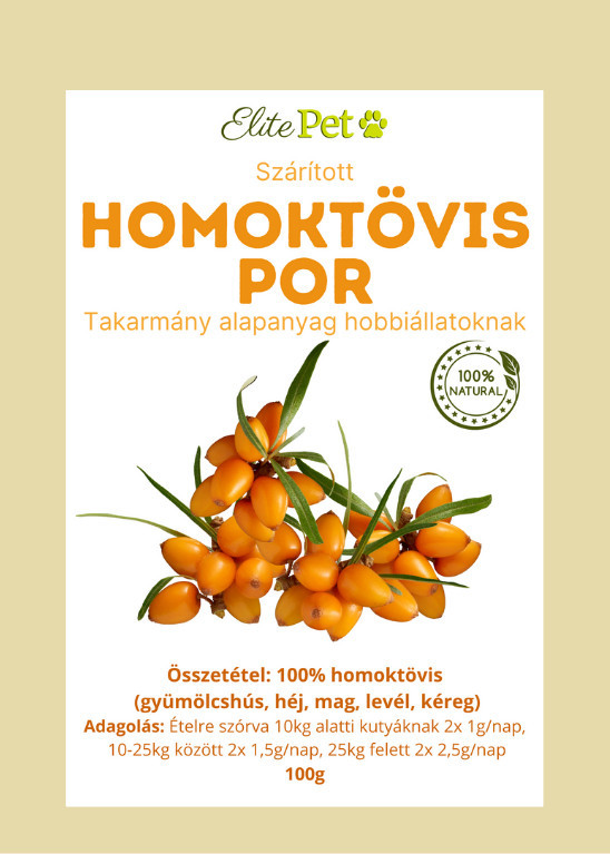 Elite Pet Homoktövis por 100g 100% (gyümölcshús, héj, mag, levél, kéreg)
