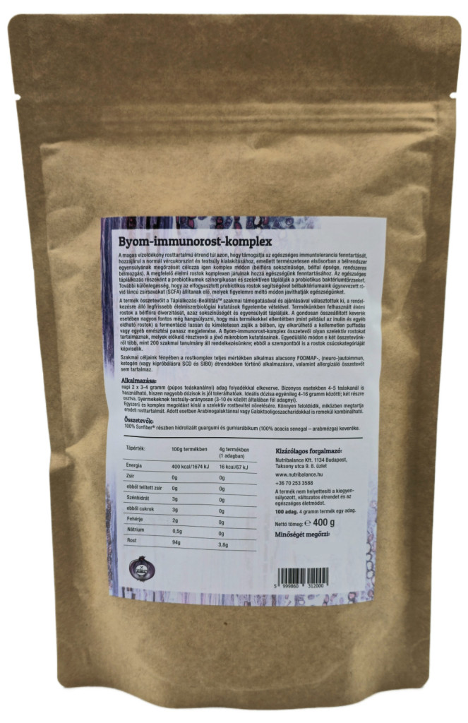 A gondosan összeállított keverék esetében nagyon fontos újra hangsúlyozni, hogy más termékekkel ellentétben (mint például az inulin és egyéb oldható rostok) a fermentáció lassan és kíméletesen zajlik a bélben, így szinte teljesen elkerülhető a kellemetlen puffadás vagy egyéb emésztési panasz megjelenése. A Bio-immunrost komplex összetevői a legideálisabb prebiotikus rostszálakat közül azt a kettőt tartalmazza, melyek már most is előkelő résztvevői a jövő mikrobiom kutatásainak.