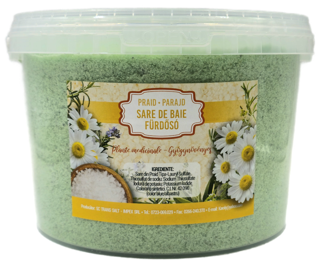 Parajdi fürdősó, a kristályokba beépült iszaptartalommal. A fürdősó a parajdi sóbánya által bányászott sóból készül, amit Európa egyik legjobb összetételű sójának tartanak. Természetes parajdi só őrlemény, amelynek szürkés színe eltér a hagyományos fehér sóktól. Ezt az elszíneződést a sóban lévő természetes, ásványi anyagokban igen gazdag iszapmaradvány okozza (ennek aránya kb. 3,5% - 4% a terméken belül). A parajdi só kalciumot, káliumot, jódot, brómot, magnéziumot és egyéb nyomelemeket tartalmaz, ezért nem hasonlítható a minőségileg gyengébb, mosott fürdősókhoz. A fürdősó rendszeres használatát nők és férfiak számára egyaránt ajánljuk.