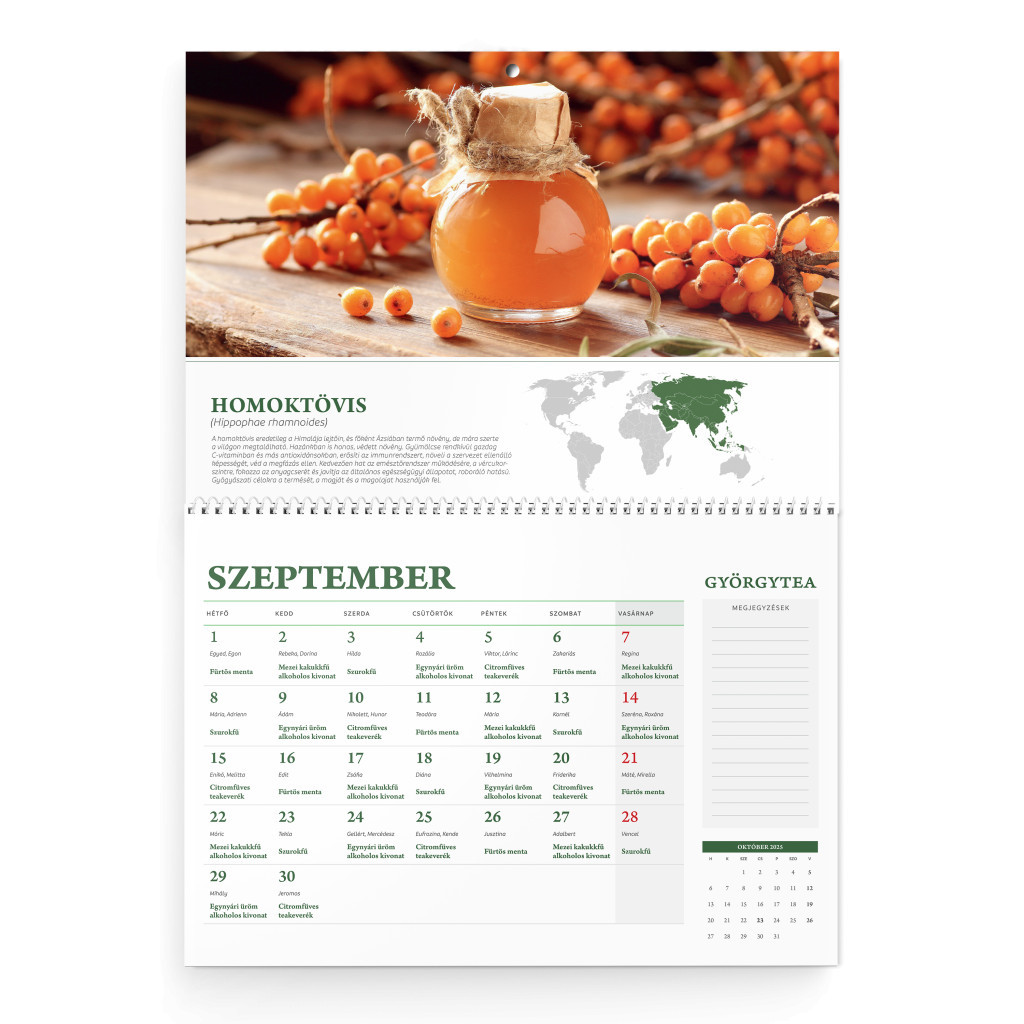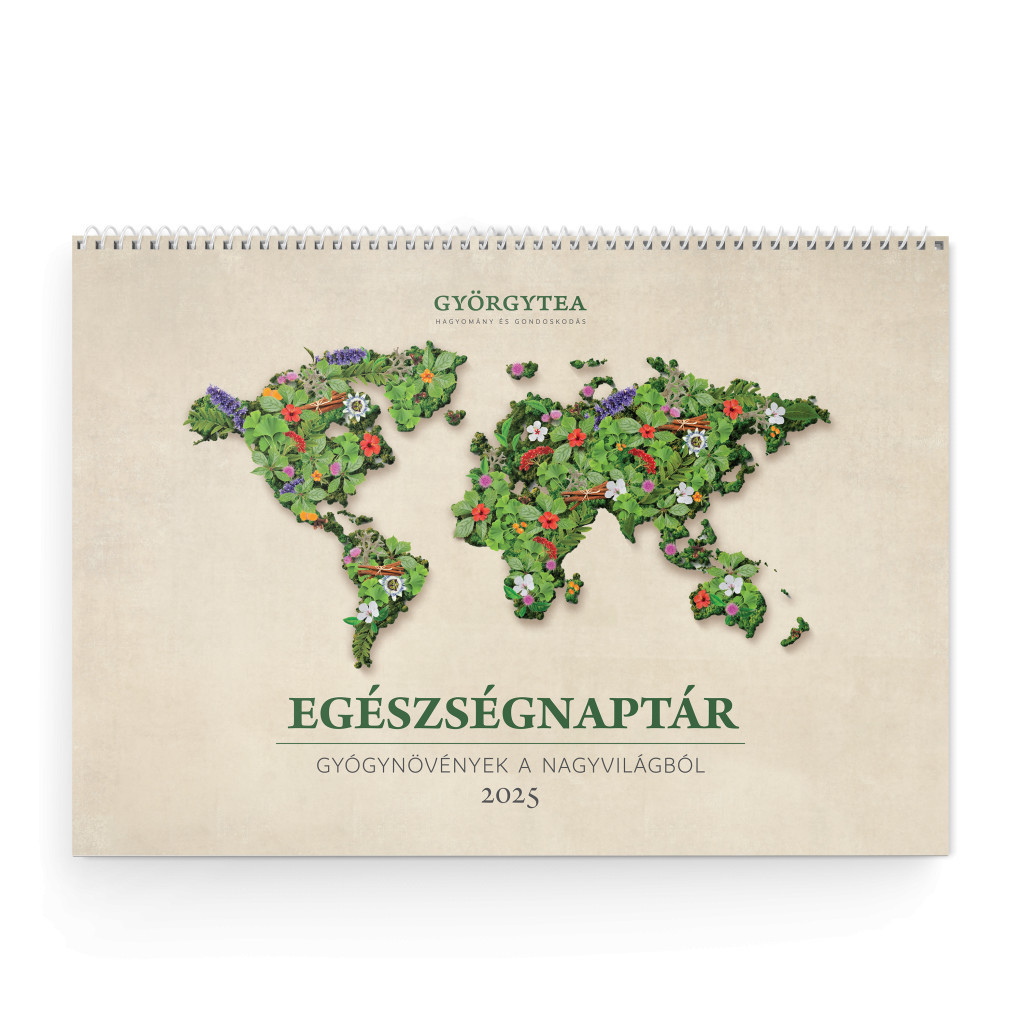 A Györgytea egészségnaptár abban segít, hogy naponta eszünkbe juttatja, milyen gyógynövényt használjunk az egészségünk megóvása érdekében. Minden napra ajánl nekünk egy gyógynövényteát vagy egy gyógynövénykivonatot, így a naptár komplex egészségvédő rendszere egész évben hozzájárulhat testi-lelki harmóniánk és energiaszintünk megőrzéséhez.