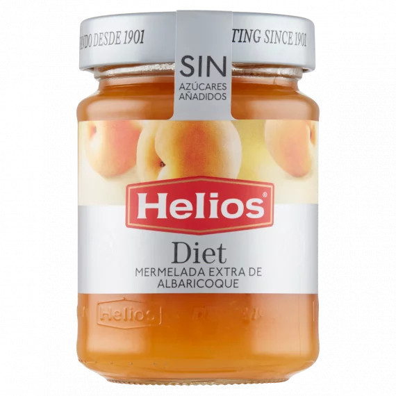 Sárgabarack, Víz, Rost, Édesítőszerek (maltitol és szukralóz), Zselésítőanyag: pektin, Savanyúságot szabályozó anyag: citromsav, Tartósítószer: kálium-szorbát, Aroma, 100 g termék 60 g gyümölcs felhasználásával készült