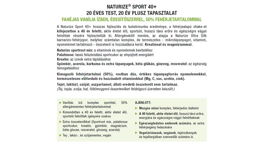 NATURIZE® SPORT 40+ komplex fehérjedús italpor superfoodokkal – 20 ÉVES TEST, 20 ÉV PLUSZ TAPASZTALAT!