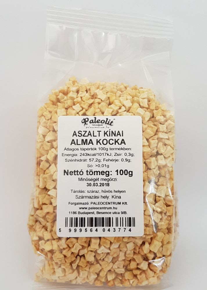 Paleolit Aszalt alma kocka 100g cukormentes, kínai 7x7mm