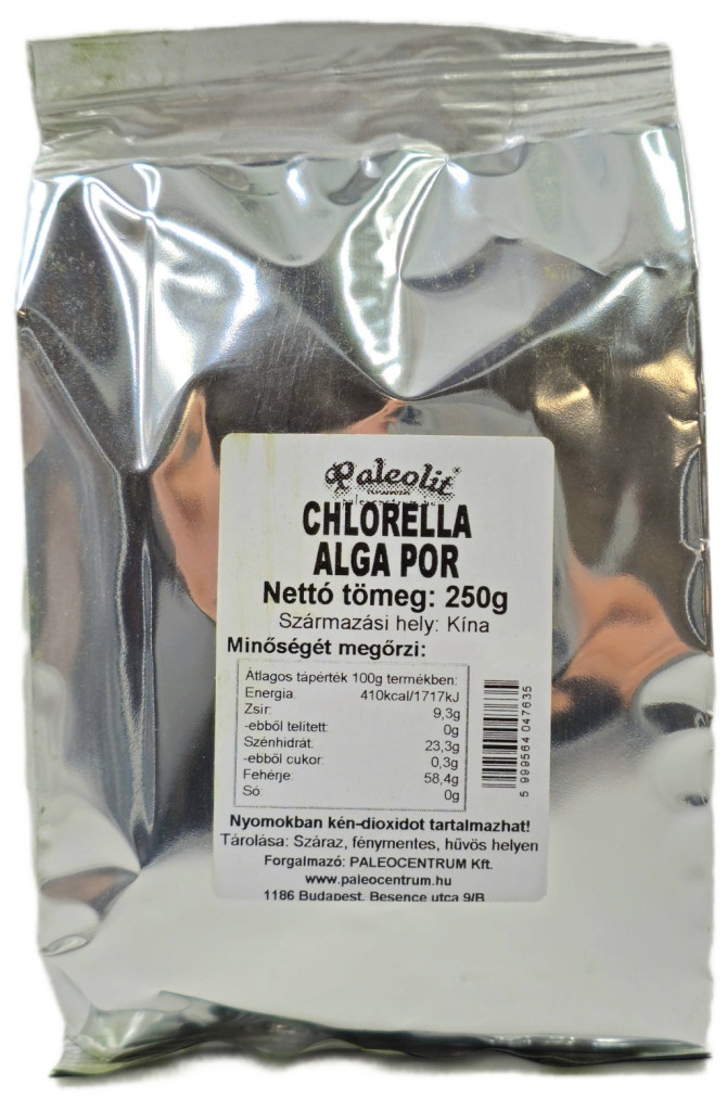 A chlorella egy édesvízi zöld mikroalga, amely természetes formában tartalmaz fehérjét, klorofillt, valamint különböző vitaminokat és ásványi anyagokat. A termék 100%-ban tiszta, adalékanyagoktól mentes chlorella alga por.