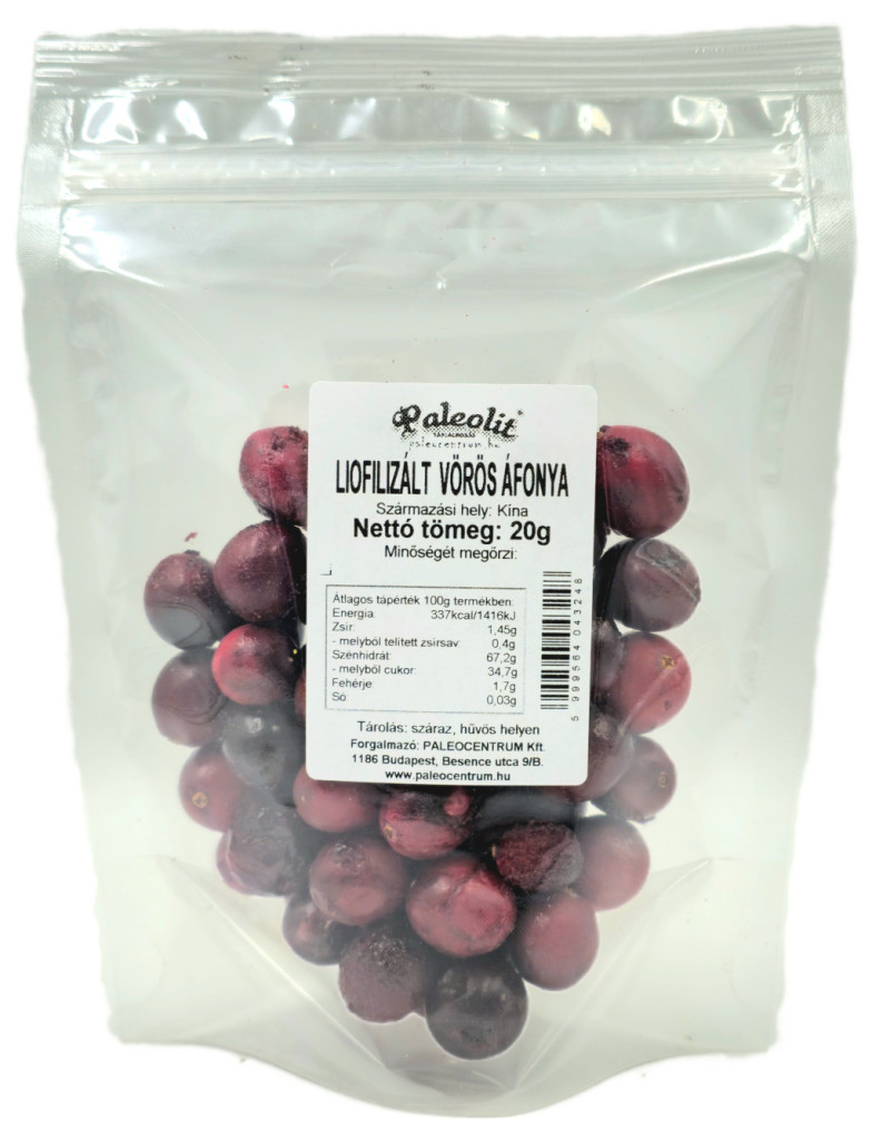 Paleolit Liofilizált vörös áfonya 20g szemek Cranberries freeze-dried