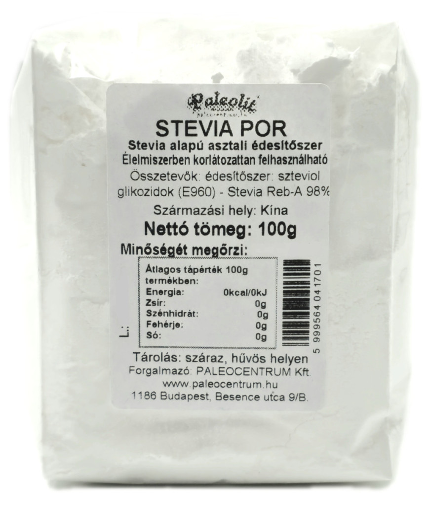 Stevia por minimum 98% Rebaudiosid A tartalommal.