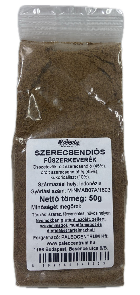 Összetevők: őrölt szerecsendió (45%), őrölt szerecsendióhéj (45%), kukoricaliszt (10%).