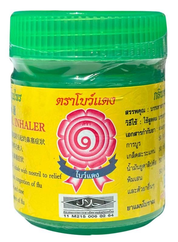 A Red Bow zöld színű herbál inhalátora Thaiföld egyik legtöbbet eladott terméke. Nem