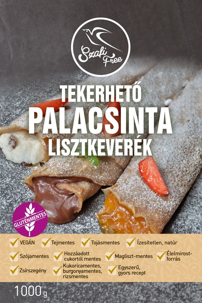 Gluténmentes, tejmentes, tojásmentes, szójamentes, kukoricamentes, burgonyamentes, rizsmentes vékony tésztás könnyen tekerhető palacsinta.