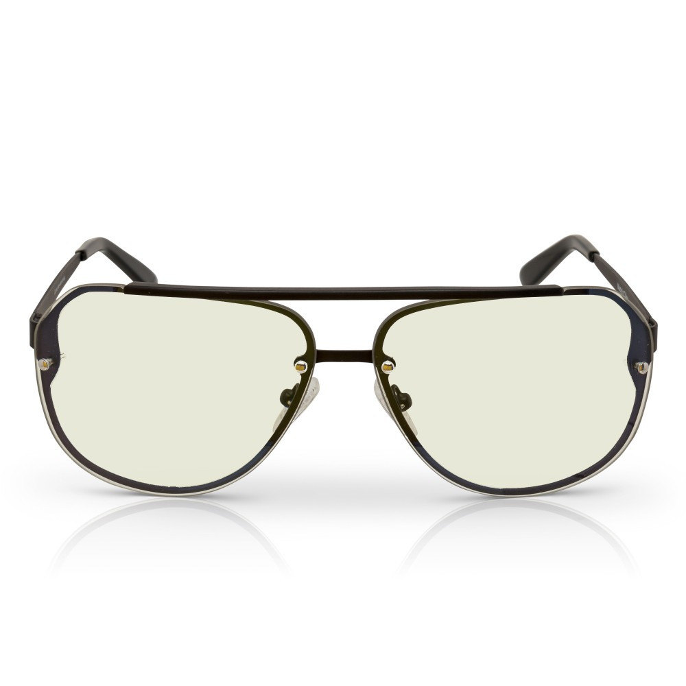 Modern pilóta szemüveg fekete matt rozsdamentes acél kerettel. Blokkolja a kékfény spektrum 40%-át és az UVA / UVB 99% -át.