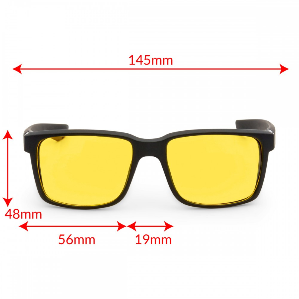 Sárga lencsés modern szemüveg fekete, matt, polikarbonát kerettel. Blokkolja a kékfény spektrum 75%-át és az UVA / UVB 99% -át. Fényre sötétedő fotókróm lencsékkel.