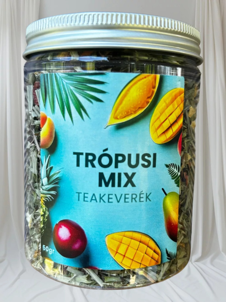 Télen-nyáron, hidegen -melegen fogyasztható Trópusi Mix teakeverékünket úgy állítottuk össze, hogy a család minden tagja fogyasztani tudja. Különleges gyümölcsös ízét a papaya, ananász, mangó, őszibarack gyümölcsök mellett a citromfű, hibiszkusz golgotavirág teszi teljessé.