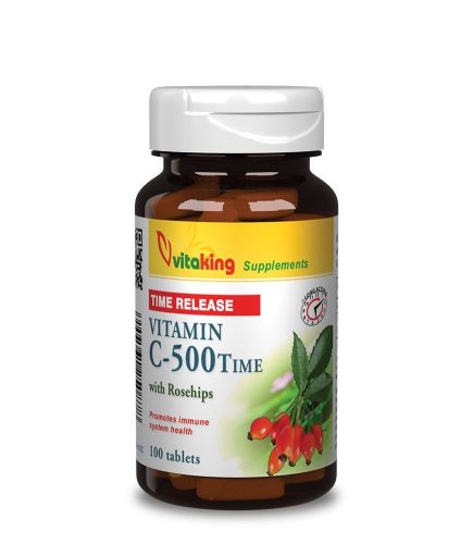Vitaking nyújtott felszívódású 500mg-os C-vitamin változat aszkorbinsav és csipkebogyó kombinációja.