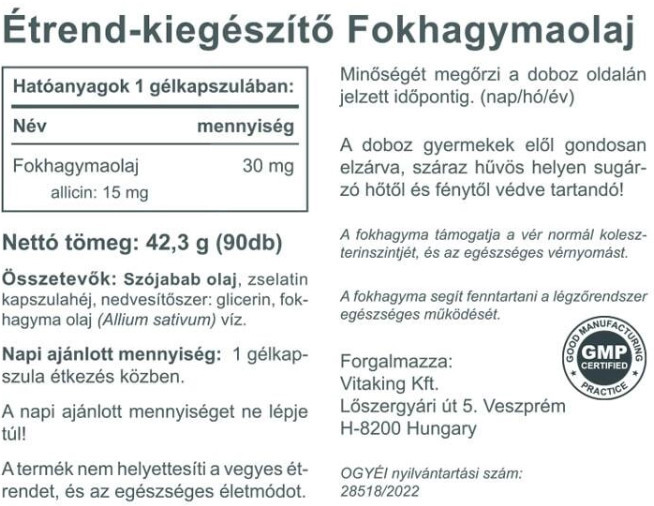 Vitaking Fokhagymaolaj 15mg Allicin (90) lágykapszula