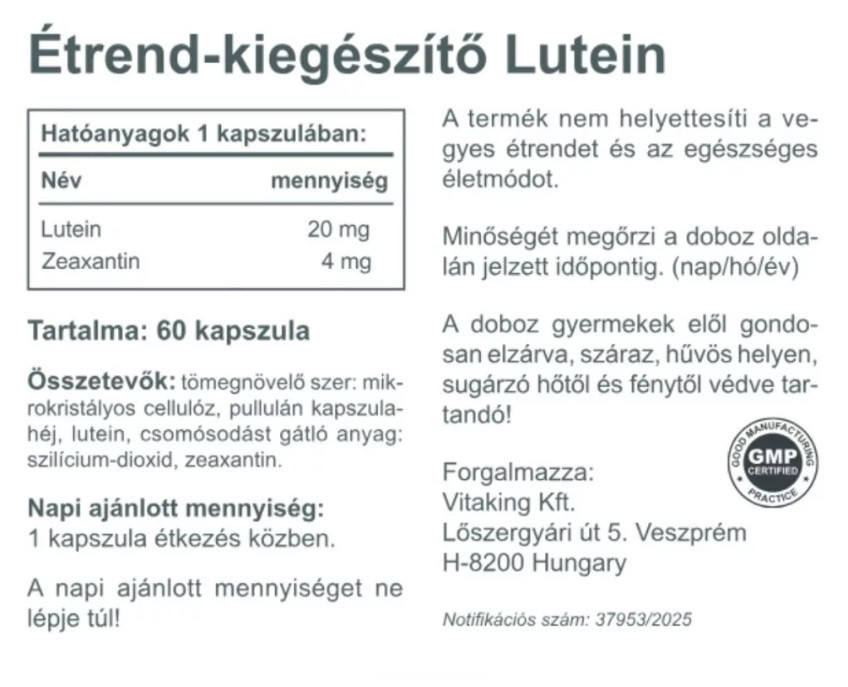 • 20 mg lutein + 4 mg zeaxantin kapszulánként