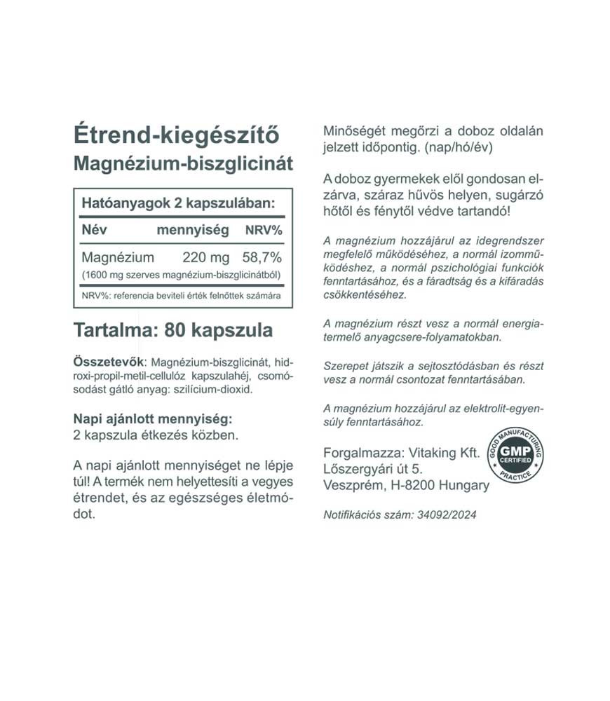 Vitaking Magnézium Biszglicinát (80) vegán kapszula (Magnézium kelát)