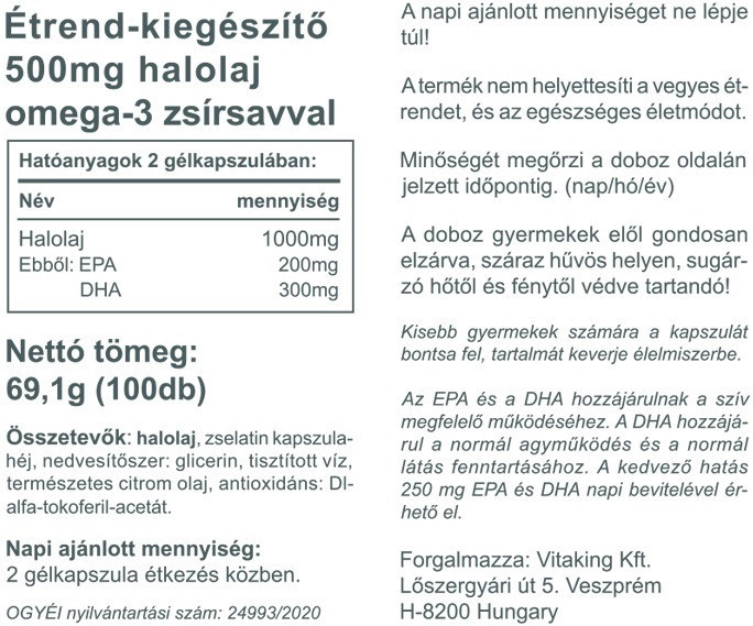 Összetevők: Halolaj, zselatin kapszulahéj, nedvesítőszer: glicerin, tisztított víz, természetes citrom olaj, antioxidáns: Dl-alfa-tokoferil-acetát.