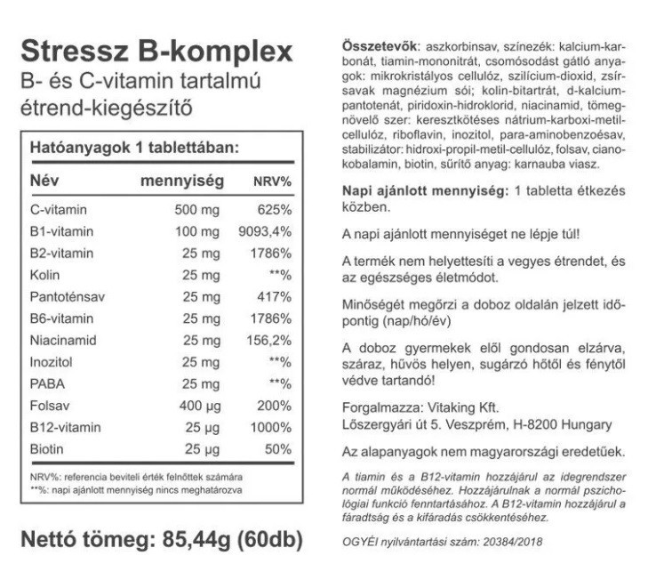 Vitaking Stress B-complex + C500 +B1 (60) tabletta