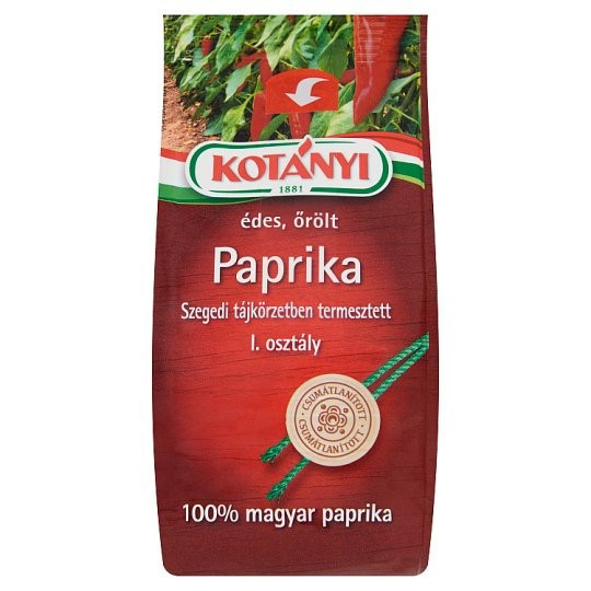 Szegedi tájkörzetben termesztett, I. osztály, Csumátlanított, 100% magyar paprika, Aromazáró csomagolás, Kotányi-Mórahalom paprika-együttműködés