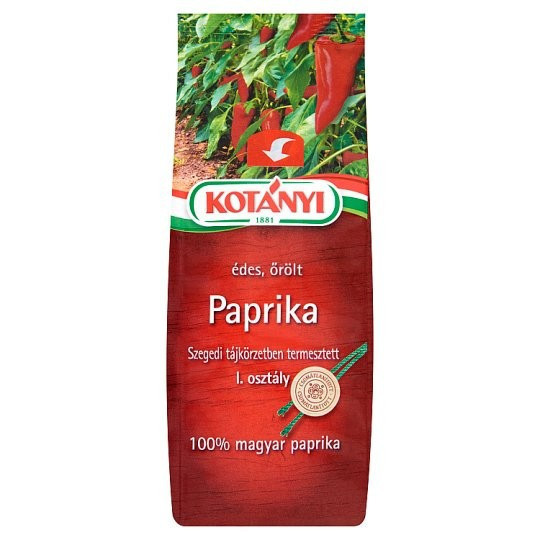 Szegedi tájkörzetben termesztett, I. osztály, Csumátlanított, 100% magyar paprika, Aromazáró csomagolás, Kotányi-Mórahalom paprika-együttműködés