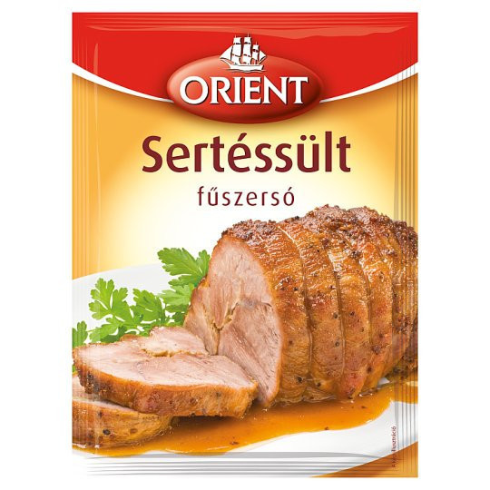 Sertéssült cseh módra (hozzávalók 4 fő részére): 1 kg szeletelt tarja, 2 vöröshagyma, 1 csomó leveszöldség, 200 ml fehérbor, 100 g aszalt szilva, olaj, 1 csomag ORIENT Sertéssült fűszersó