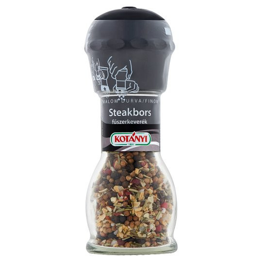 Jódozott tengeri só (tengeri só, kálium-jodát), (20%) bors, Vöröshagymagranulát, Fokhagymagranulát, Koriander, Rozmaring, Rózsabors, Kakukkfű, Chili