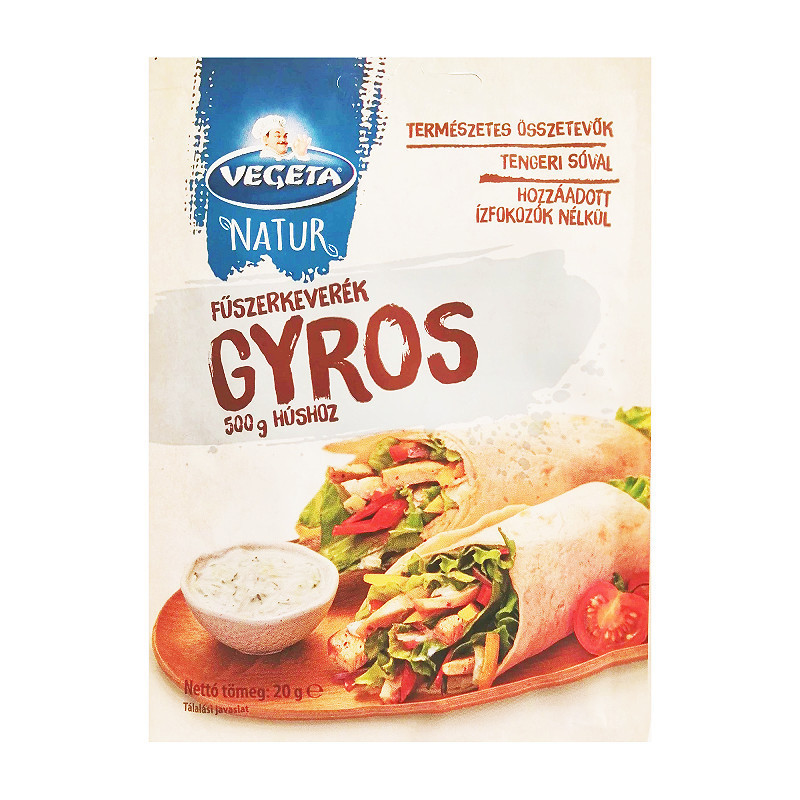 Gyros fűszerkeverék. Természetes összetevőkkel, tartósítószer nélkül, hozzáadott ízfokozók nélkül, adalékanyagok nélkül, 500 g húshoz.