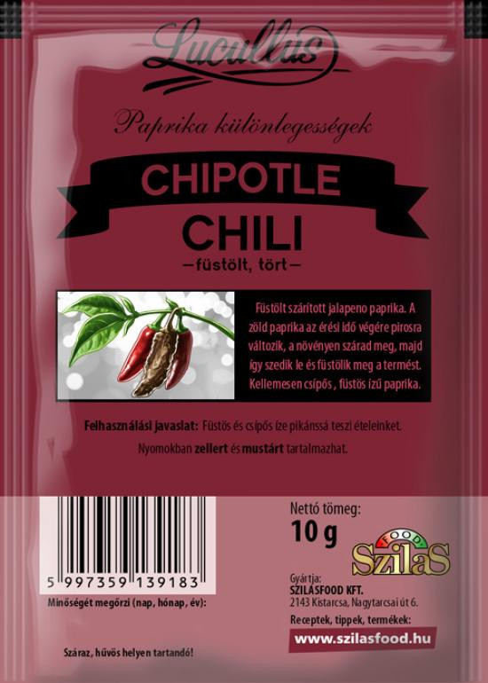 Füstölt szárított jalapeno paprika. A zöld paprika az érési idő végére pirosra változik, a növényen szárad meg, majd így szedik le és füstölik meg a termését. Kellemesen csípős, füstölt ízű paprika.