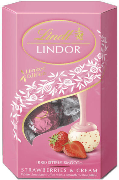 Egyedülállóan krémes simogatások a LINDOR pralinétól. Fehér csokoládé praliné eperdarabokkal kiegészíti a tökéletes héjat a rejtett eperkrémes töltelékhez. Kényeztesse magát egy pillanattal, vagy ajándékozza ezt a finomságot szeretteinek.