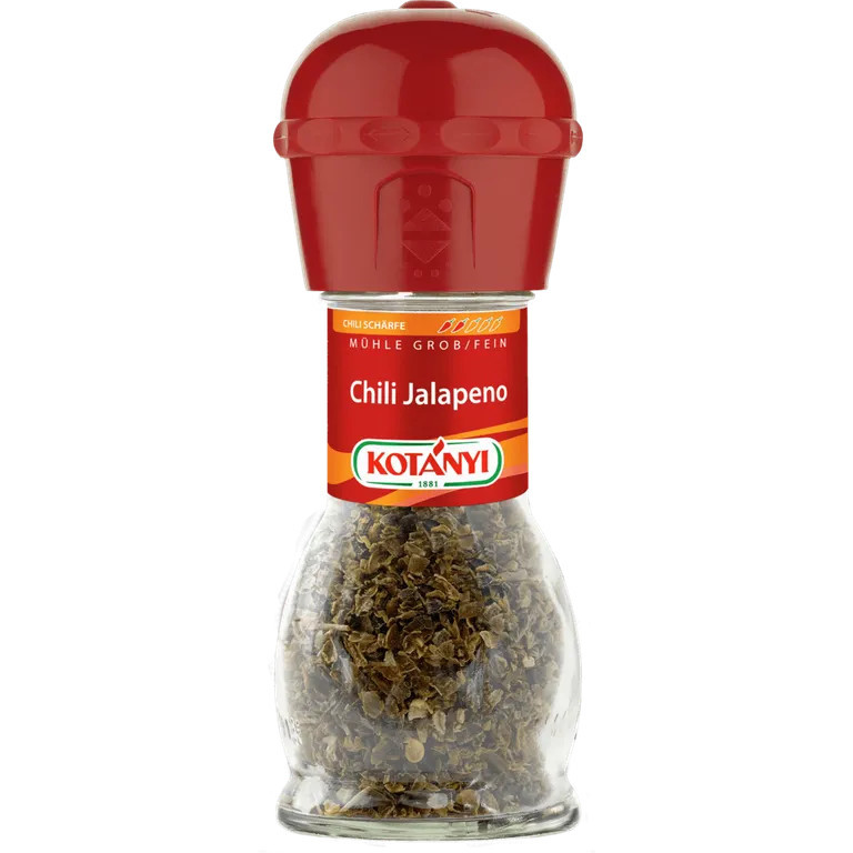 • Mexikó híres paprikája, a Jalapeno, a legismertebb chili paprikák közé tartozik. Leginkább az éretlen, zöld termését használják, tekintve, hogy minél érettebb a jalapeno, annál többet veszít erősségéből. A Kotányi Jalapeno paprikadarabkák friss, tüzes szenvedélyt visznek az ételekbe.