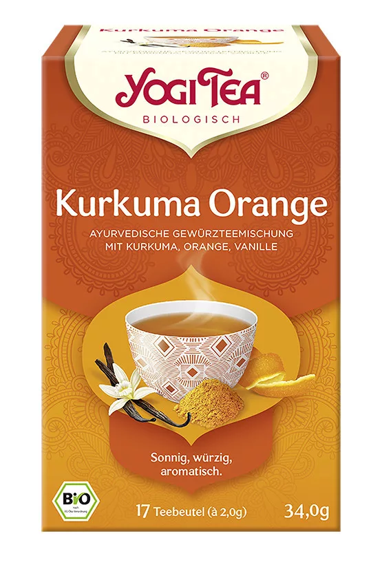 Tea azok számára, akik szívvel-lélekkel érzik az ízeket. Engedje, hogy a Nap beragyogja a szívét és így a teljes életét! Az erőteljes kurkuma találkozása az enyhén gyümölcsös naranccsal és a finom vaníliával különleges örömöt nyújt: aranylóan ragyogó tea, mely az édes és fűszeres ízével elkényeztet, egyedülálló élményben részesít. Ez az igazi gazdagság. Próbálja ki a YOGI TEA® Kurkuma narancs teát akár önmagában, akár egy cseppnyi édesítővel és tejjel vagy annak valamilyen (vegán) megfelelőjével.