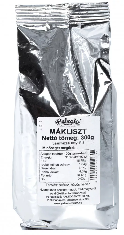 Felhasználható: Remek sütemény alapanyag. Csodálatos mákos-meggyes muffin készíthető belőle. Citrom és édesítőszer (xilit, eritrit vagy stevia) hozzáadásával finom és egészséges tölteléket varázsolhatunk a süteményeinkbe. Ha csak máklisztet használunk, akkor adjunk a tésztához eggyel több tojást a receptben leírtakhoz képest, hogy elkerüljük a morzsálódást.