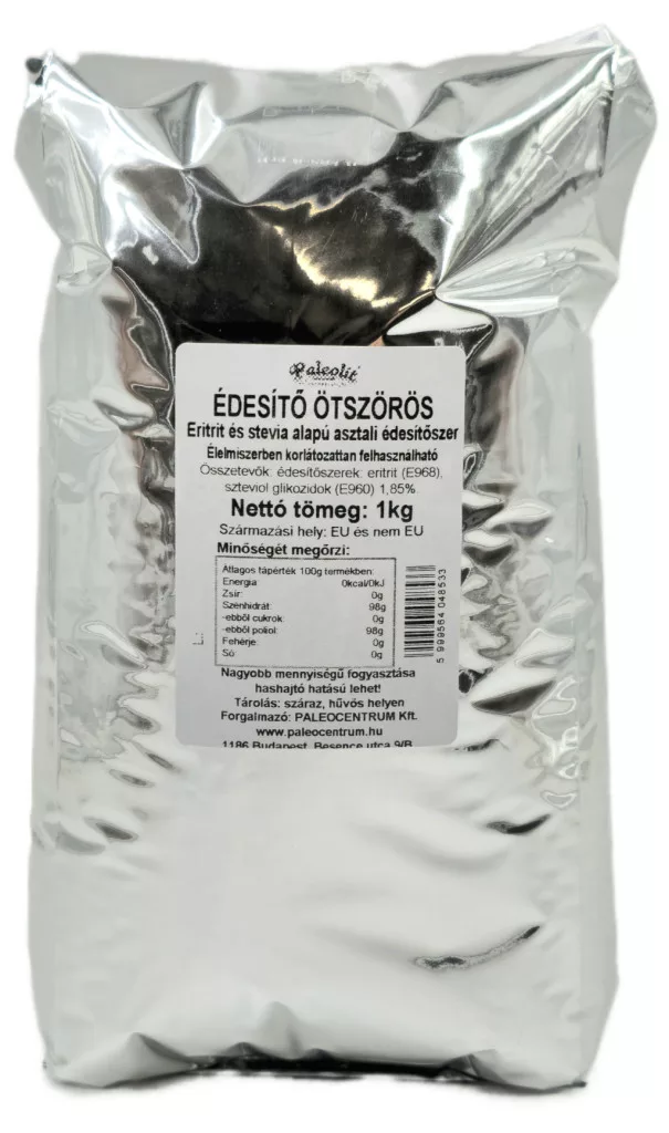 Eritrit és stevia keveréke, mely ötször édesebb a répacukornál.