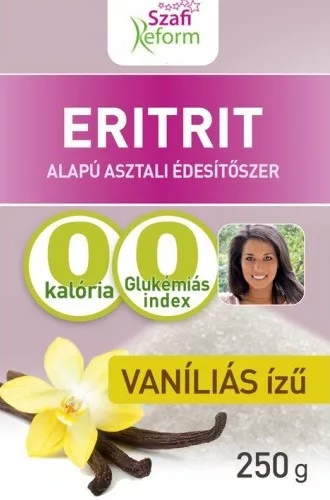 Összetevők: édesítőszer 99,5% (eritrit), 0,5% természetes vanília aroma.