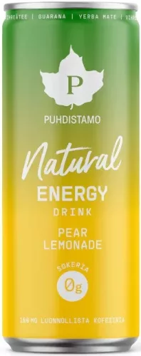 A Puhdistamo's Natural Energy Drink Pear Lemonade egy új korszak energiaital, amelynek minden összetevője a természetből származik.