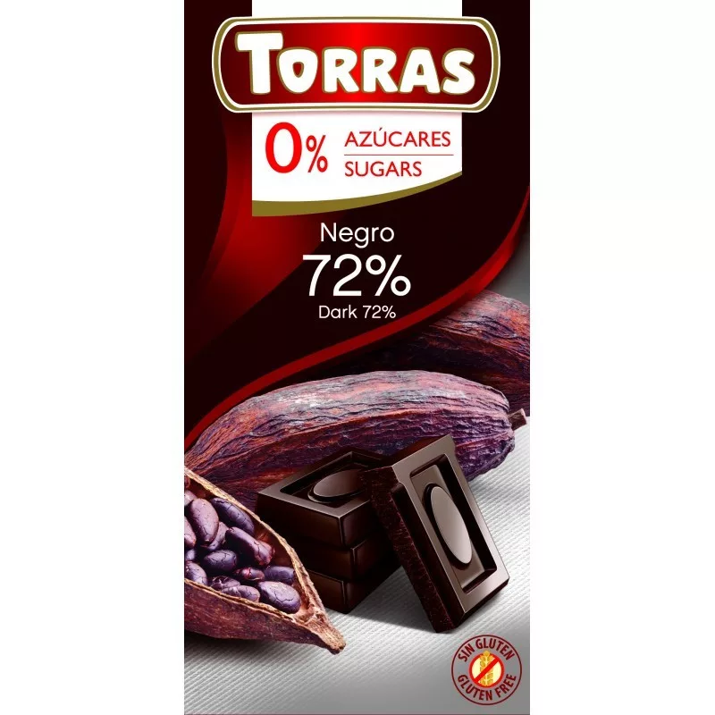 Torras étcsokoládé 72%-os kakaótartalommal, hozzáadott cukor nélkül, édesítőszerrel