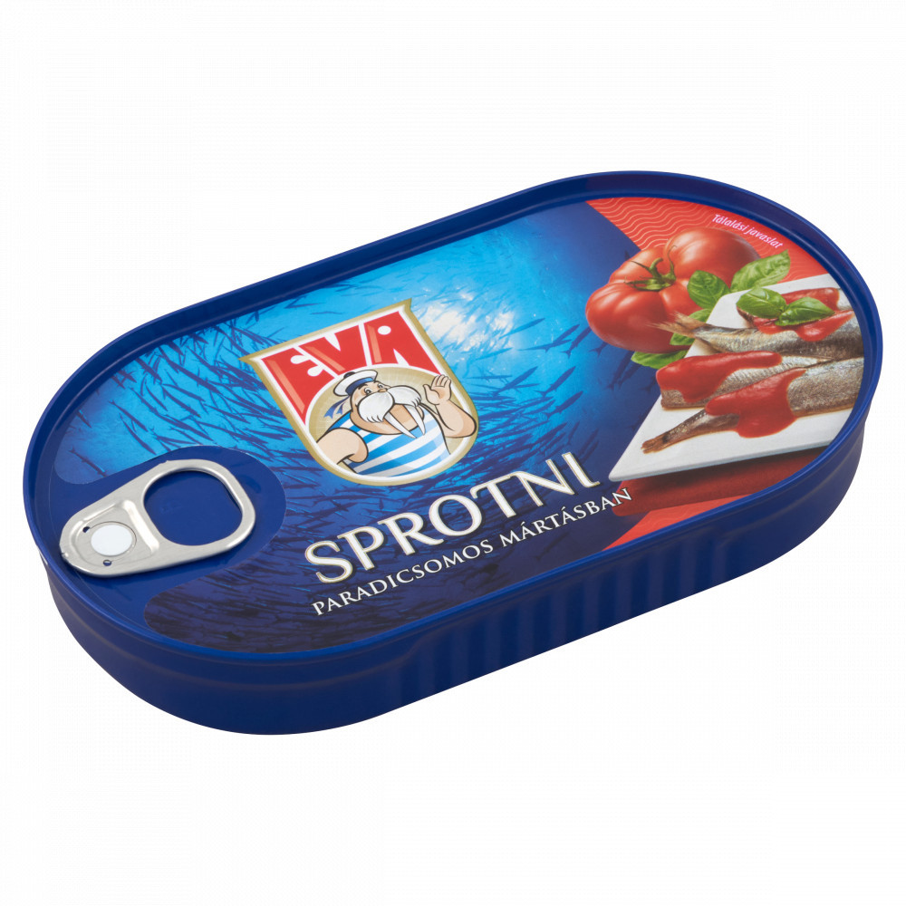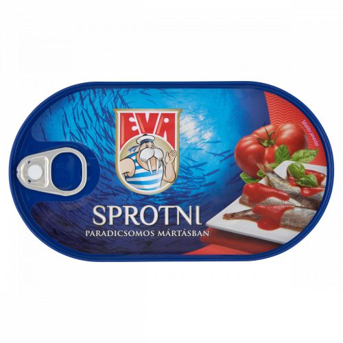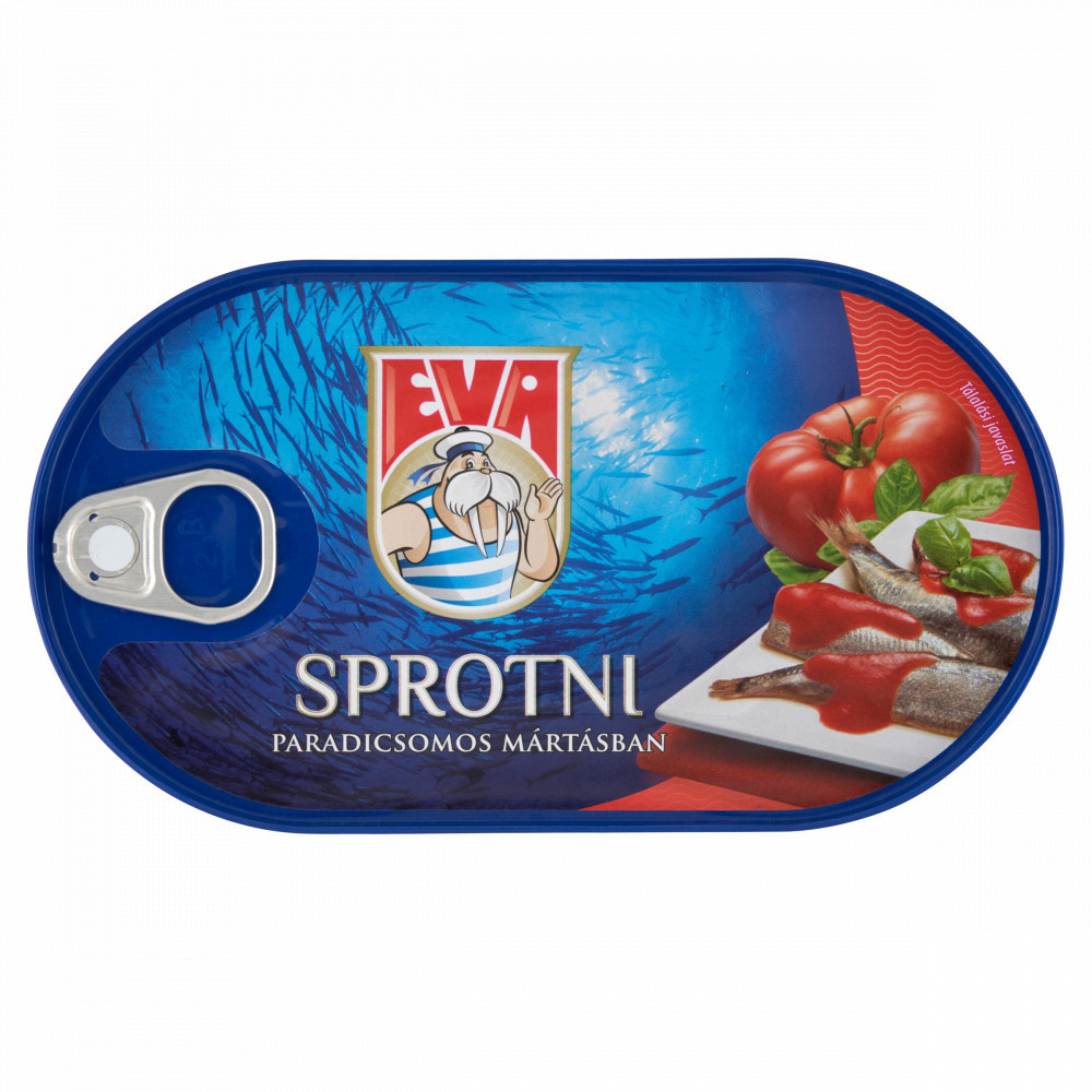 Sprotni (Sprattus sprattus) 50%, Paradicsomos mártás 50% (ivóvíz, sűrített paradicsom 12%, cukor, ételecet, módosított kukoricakeményítő, étkezési só, repceolaj, sűrítőanyagok (guargumi, xantángumi), szárított vöröshagyma, fűszerkivonat)