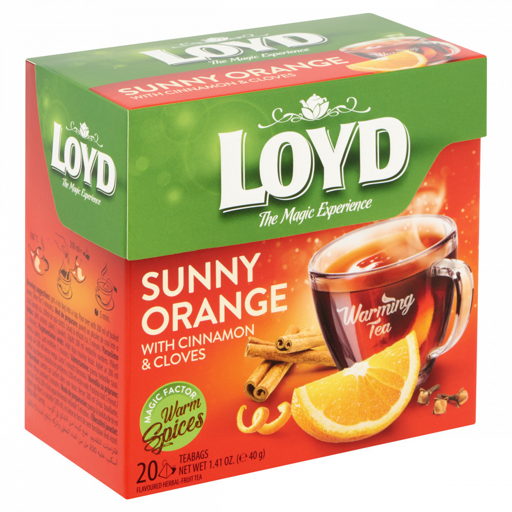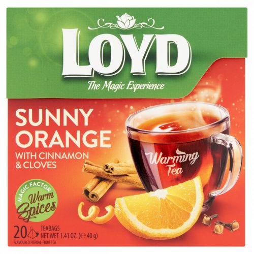 Loyd Sunny Orange narancs, fahéj és szegfűszeg ízű gyümölcstea 20 filter 40 g