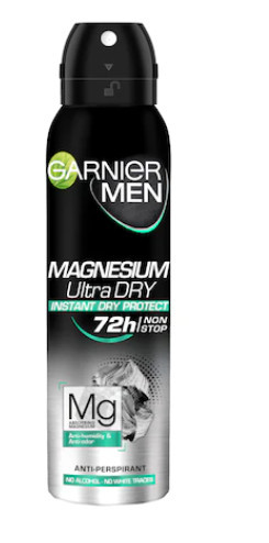 A Garnier Men Magnesium Ultra Dry 72 órán keresztül nyújt védelmet az izzadság és a kellemetlen szagok ellen.