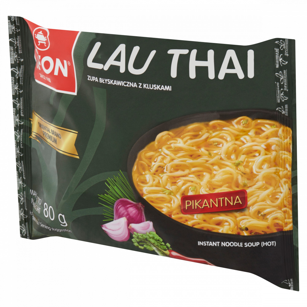 Tészta (82,5%): búzaliszt, pálmazsír, tápióka, keményítő, só, cukor, stabilizátorok: trifoszfátok, guargumi; térfogatnövelő szerek: kálium-karbonátok, nátrium-karbonátok; kurkuma, Leves alap (17,5%): pálmaolaj, só, cukor, ízfokozók: mononátrium-glutamát, dinátrium-guanilát, dinátrium-inozinát; piros mogyoróhagyma (4,9%), szárított zöldségek változó arányban (4%): zöldhagyma, chili paprika; tejpótló (glükózszirup, pálmazsír, nátrium-kazeinát (tej), emulgeálószer: E 471, csomósodást és lesülést gátló anyag: E 554, aroma), chili (2%), savanyúságot szabályozó anyag: citromsav, aroma (rákfélék), maltodextrin, citromfű, galangal, bors, színezék: karotinok, egyszerű égetett cukor, paprikakivonat; antioxidáns: E 306